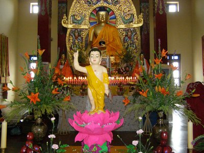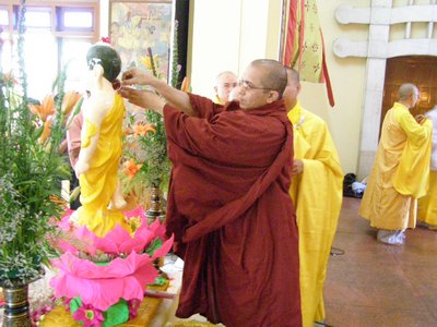 Nghi lễ tôn giáo được cử hành trang nghiêm trong hai hình thức, Nam Tông và Bắc Tông. Tất cả mọi người đều nhiễu quanh tôn tượng Đản sinh, và thành kính tắm Phật.