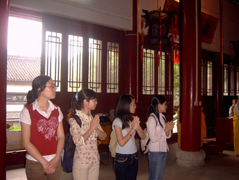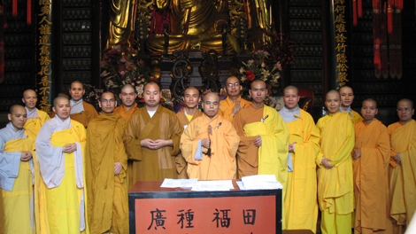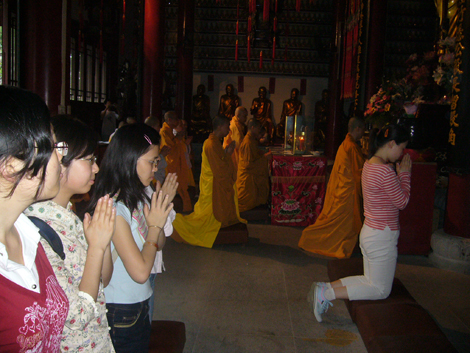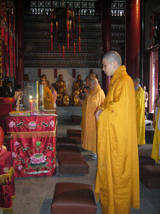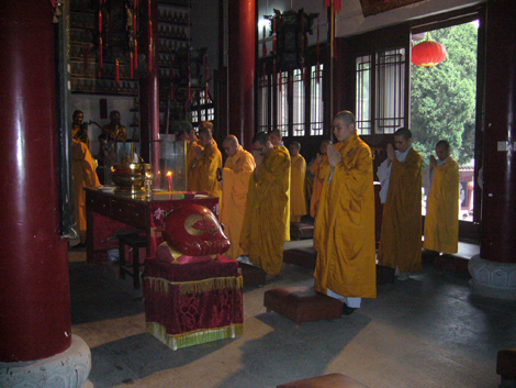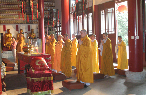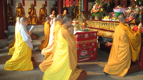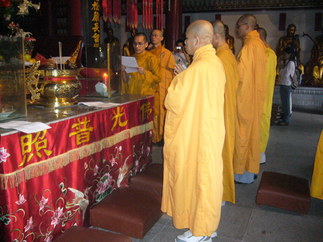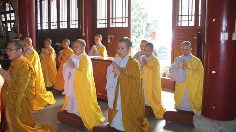 Buổi lễ ngoài Tăng Ni sinh, còn có một số Giáo viên, Sinh viên Việt Nam, Trung Quốc cùng về tham dự. Trong không gian trang nhiêm và tĩnh lặng toàn thể đạo tràng chấp tay trang nghiêm lắng nghe Đại Đức Thích Giác Nhường phụng đọc thông điệp Phật Đản của Ban thường trực HĐCM GHPGVN. Tiếp theo là phần nghi lễ do Đại Đức Thích Phước Thiện làm chủ sám, Đại Đức Lệ Sáng và Đại Đức Giác Thái làm duy na duyệt chúng. Cuối cùng, Đại Đức Thích Phước Thiện thay mặt toàn thể Tăng Ni du học cảm tạ Chư Tôn Đức bản tự.