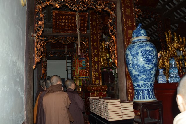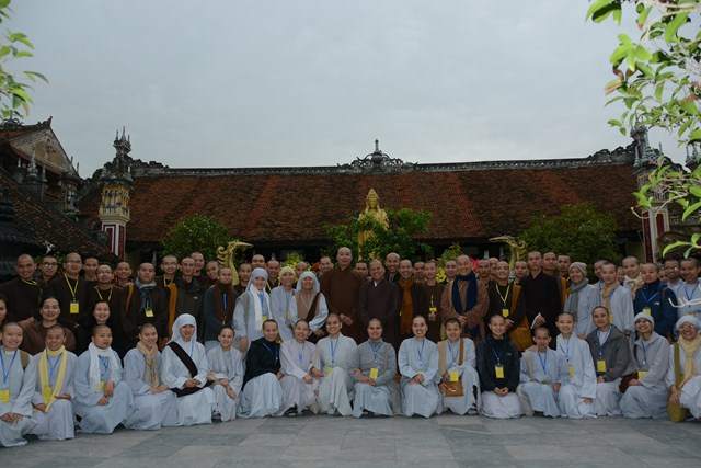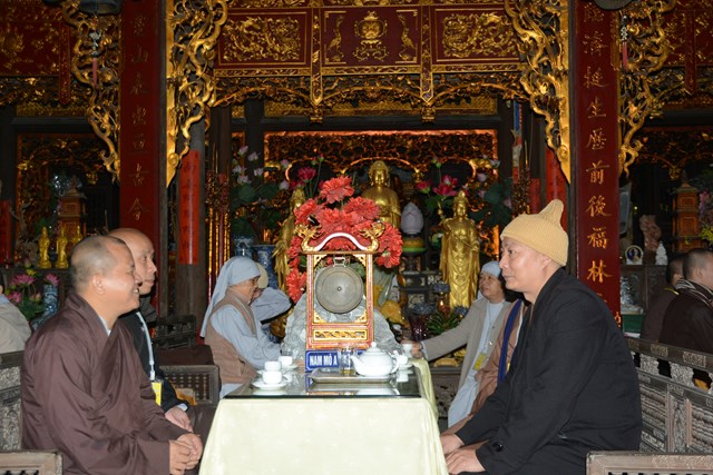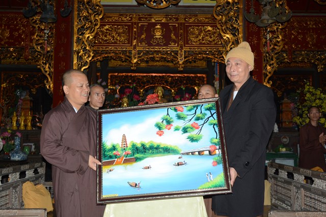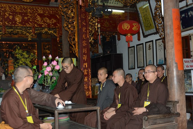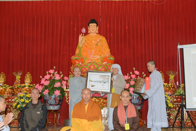 Thay mặt cho đoàn tăng ni sinh trường TCPH khóa VII tỉnh Thừa Thiên Huế, Ni sư Thích Nữ Bích Châu đã trao những món quà rất ý nghĩa mang từ miền Trung xa xôi gửi tới chư tôn đức Ni trong chốn trụ xứ và các Phật tử đang tu học tại chùa Vẽ trên tinh thần lục hòa của nhà Phật. Ngay sau đó, toàn thể ni chúng trụ xứ và các Phật tử đã thực hiện nghi thức cúng dường trai tăng trong không khí trang nghiêm, thành kính và đại hoan hỷ, kết thúc chuyến hành trình về Đất Tổ của đoàn tăng ni sinh tỉnh Thừa Thiên Huế.