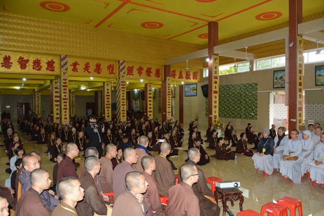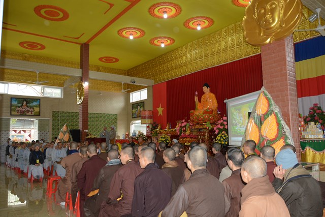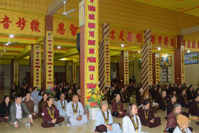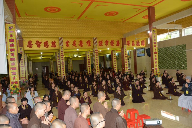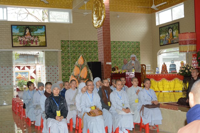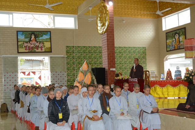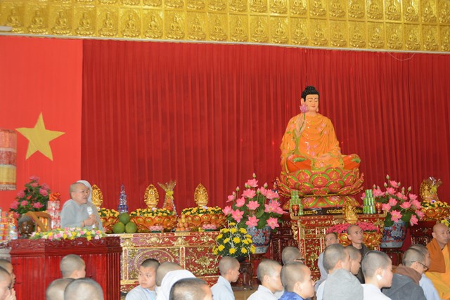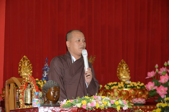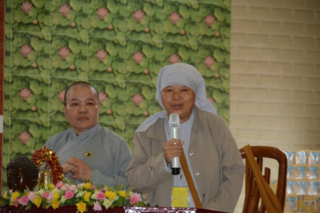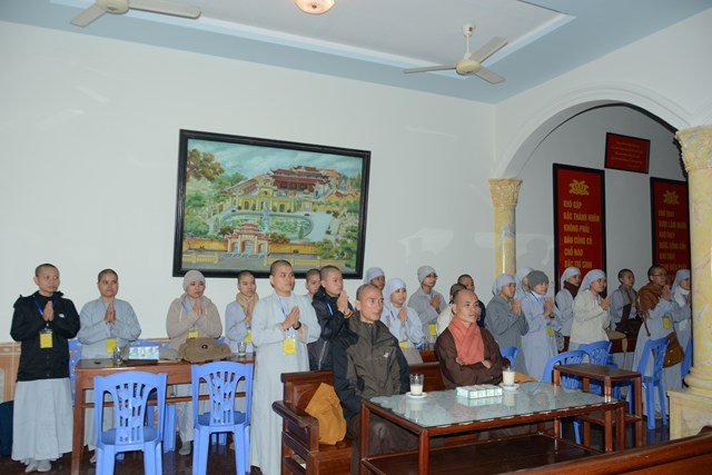 Nhân dịp này, Đại đức Thích Nhật Tuệ – Chánh thư ký trường TCPH tỉnh Thừa Thiên Huế đã chia sẻ cùng các Phật tử có mặt tại đạo tràng một số kinh nghiệm trong quá trình tu tập và sách tấn các Phật tử cố gắng tu học tinh tấn để thoát khỏi khổ đau, thoát khỏi kiếp sinh tử luân hồi, tiến tới con đường giải thoát, giác ngộ. Đồng thời, đại đức trưởng đoàn cũng đã gửi lời tri ân tới chư tôn đức Ni chúng bản tự cũng như các Phật tử đã tiếp đón đoàn rất chu đáo, thấm tình đạo vị.