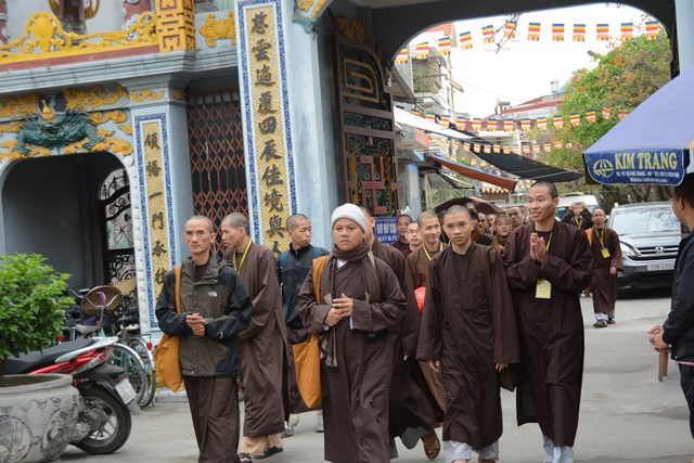 Dẫn đầu phái đoàn là Đại đức Thích Nhật Tuệ – Chánh thư ký trường TCPH tỉnh Thừa Thiên Huế, chư tôn đức tăng ni Ban giáo thọ trường TCPH tỉnh Thừa Thiên Huế cùng hơn 100 tăng ni sinh đang theo học tại trường Trung cấp Phật học tỉnh Thừa Thiên Huế. Tại chùa Hàng, đoàn đã được Đại đức Thích Tục Minh – Chánh văn phòng BTS GHPGVN thành phố Hải Phòng tiếp đón. Tại đây đoàn đã gửi lời vấn an Hòa thượng Thích Quảng Tùng – Phó chủ tịch HĐTS TƯ GHPGVN, trưởng Ban trị sự GHPGVN thành phố Hải Phòng. Đồng thời, đoàn đã tặng quà, lễ Phật và cúng dường hòa thượng nhân chuyến viếng thăm.