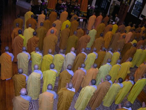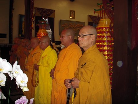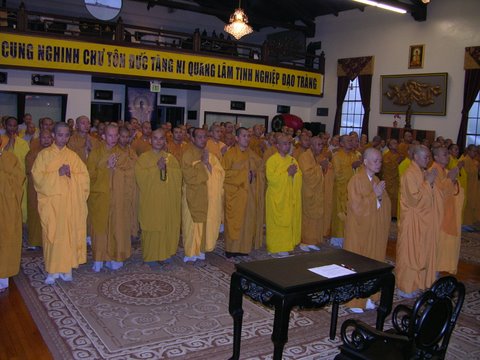 Sáng thứ hai 16 tháng 6 năm 2008, khi chúng tôi trở lại chùa Phật Đà thì mặt trời đã đứng bóng. Từ trước hai block đường, cư dân địa phương đã cảm nhận không khí của một ngày hội lớn. Từng đoàn xe nối nhau, quẩn quanh tìm chỗ đậu, từng nhóm Phật tử áo lam hớn hở chào nhau, cùng tiến về cổng chùa. Rồi những tình nguyện viên đi đón quý Chư Tôn Đức ở xa tới, tấp nập ngừng xe để quý ngài xuống, mang đến bao tiếng reo vui mừng rỡ của Phật tử khi được gặp lại những vị tôn túc khả kính.