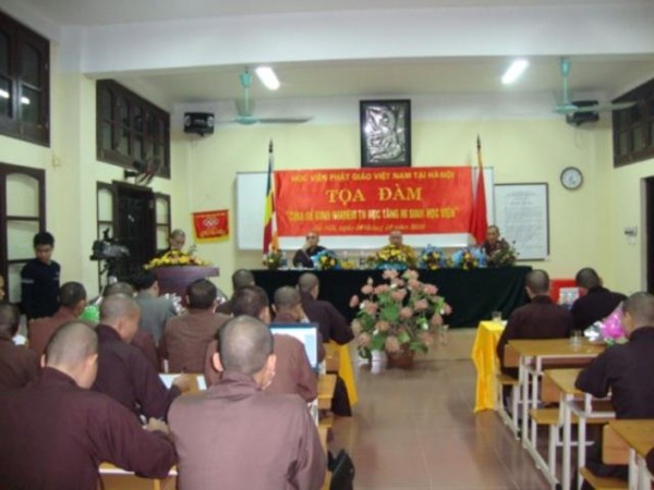 Do khu Bảo tàng Phật học – Đại giảng đường chưa hoàn thành, HV không đủ không gian tập trung tổ chức toạ đàm cho toàn thể Tăng Ni sinh, nên Văn phòng HV đã chỉ đạo triển khai các buổi toạ đàm tại từng lớp.