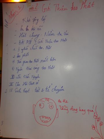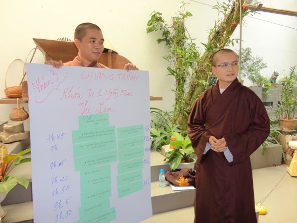 Sau những phút giây làm quen bở ngỡ, quý thầy cô chia nhóm, bốc thăm đề, thảo luận nhóm trên giấy A0, bắt đầu cho chương trình trò chơi ghép chữ. Các chương trình như; một ngày dạy giáo lý, khóa tu một ngày an lạc, khóa tu một ngày dành cho lễ Vu lan, tết Trung Thu,… Đây là những hoạt động thường niên của CLB. Và công việc của các thành viên là làm sao sắp xếp lại thời gian và thứ tự chương trình cho một ngày tu học của các em thật phù hợp, không bị nhàm chán, nặng nề, căng thẳng.