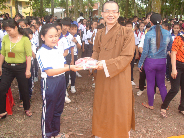 Trong chuyến đi lần này, dưới sự hướng dẫn của ĐĐ.Thích Quảng Trí – Trưởng Ban TTXH PG Q.10 – Trụ trì chùa Phật Quang Q.10, gần 3500 phần quà Trung Thu gồm (tập viết, lồng đèn, bánh kẹo, tiền…) được chia ra cho nhiều Đoàn Phật tử đi đến các Trường trong xã Bàu Đồn để trực tiếp trao cho các bé Thiếu Nhi vùng quê nghèo đón một mùa Tết Trung Thu nhiều niềm vui và hạnh phúc.
