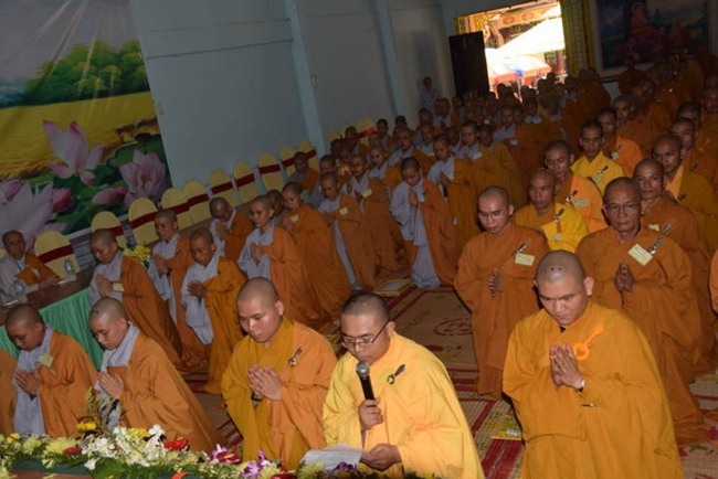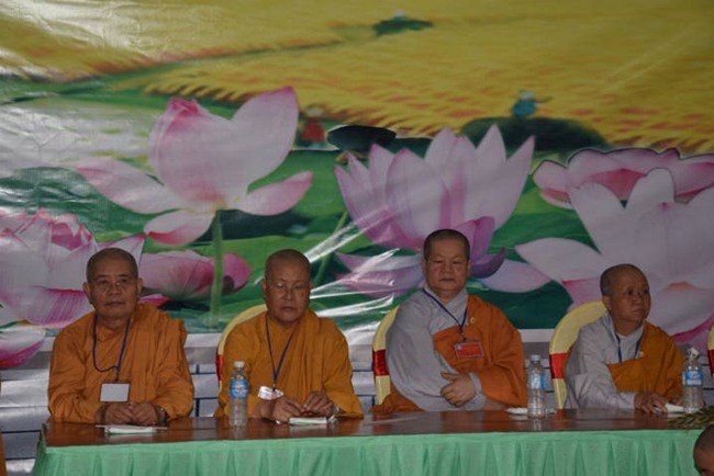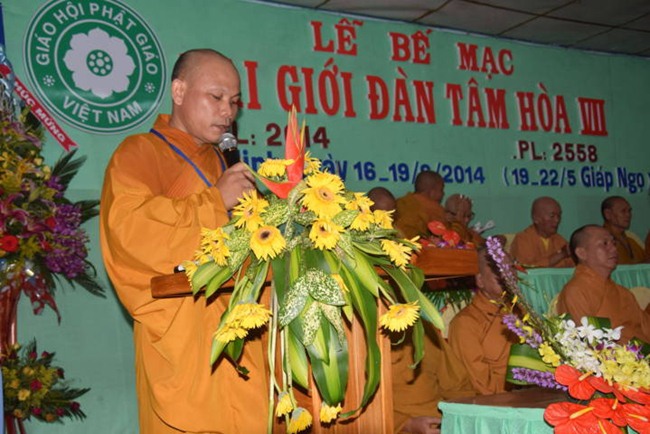 Đại Đức Thích Huệ Chơn ( Minh Đăng ) – Phó Thư ký BTS GHPGVN tỉnh Tây Ninh thừa ủy nhiệm của BTS đọc quyết định khen thưởng cho các Giới Tử Tăng và Ni đã đạt kết quả xuất sắc trong kỳ Khảo hạch ngày 16/6/2014 vừa qua (Tổng số: Tăng 6 vị, Ni 10 vị ).