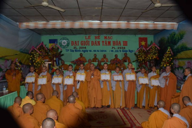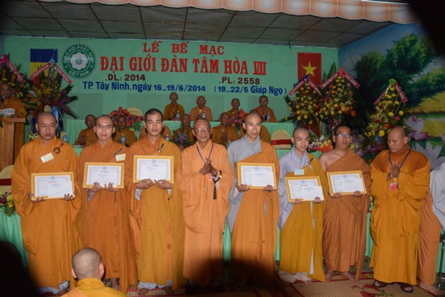 Đại Giới Đàn Tâm Hòa VII do BTS GHPGVN tỉnh Tây Ninh tổ chức đã chính thức khai mạc trọng thể vào ngày17/6/2014 (nhằm ngày 20/5 Giáp Ngọ) đến nay trải qua ba ngày thực hiện với tinh thần hòa hợp, khẩn trương, trang nghiêm và thanh tịnh đã đạt được thành tựu tốt đẹp. Để đạt được điều đó là nhờ vào nhiều yếu tố thắng duyên mà trong diễn văn Bế mạc thừa ủy nhiệm của HT Thích Thông Nghiêm – Trưởng BTS GHPGVN tỉnh Tây Ninh, trưởng BTC, TT. Thích Minh Nhân- Trưởng Ban TTXH Phật giáo tỉnh đã nêu đó là Giới sư thanh tịnh, Giới trường trang nghiêm và Giới tử thành tâm cần cầu giới pháp; đồng thời co đôi lời cảm niệm ân đức Chư tôn giáo phẩm trong HĐCM, HĐTS TW GHPGVN, Chư tôn đức BTS Phật giáo các tỉnh thành, Chư tôn đức Tăng Ni trụ trì các tự viện trong và ngoài tỉnh, các cấp lãnh đạo chính quyền, quý đồng bào Phật tử đã tạo điều kiện thuận lợi, về chứng minh tham dự và hỗ trợ cho Đại Giới đàn được thành tựu tốt đẹp.