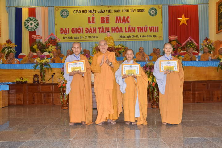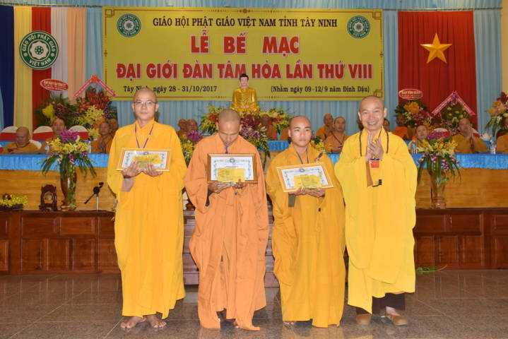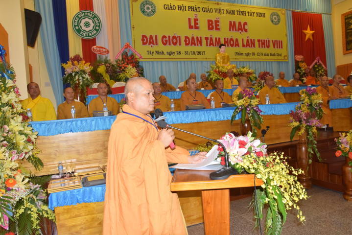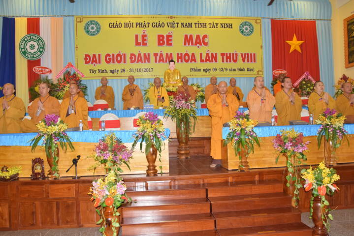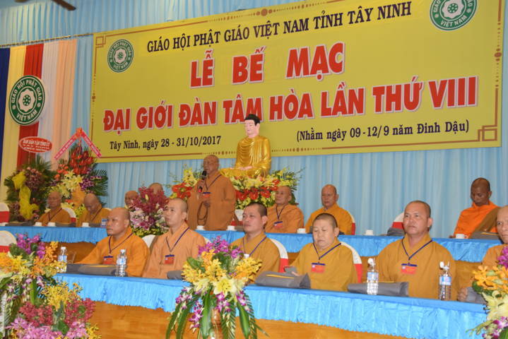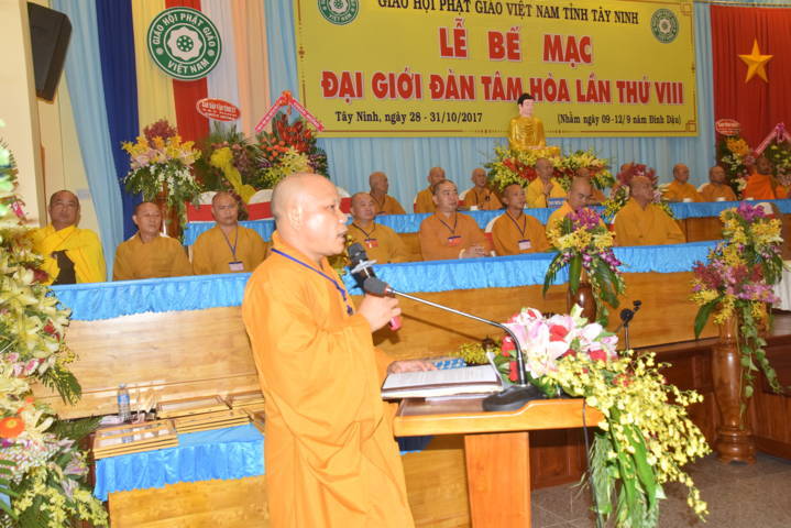 ĐĐ.Thích Thiện Thức – Phó Ban kiêm Chánh Thư ký Ban Trị sự GHPGVN tỉnh Tây Ninh báo cáo n kết quả Đại giới đàn Tâm Hòa VIII năm 2017. Qua đó cho biết, Đại giới đàn có tổng số gần 300 giới tử đăng ký thọ giới đã qua kỳ thi khảo hạch và diễn ra từ ngày 28 đến ngày 31/10/2017 (nhằm ngày mùng 9- 12/9 Đinh Dậu).