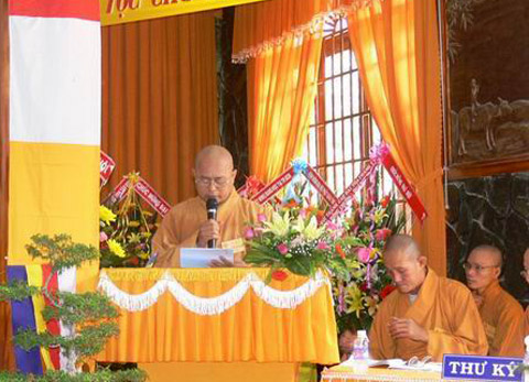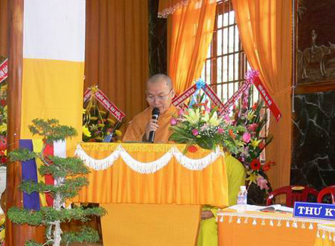 TT. Thích Huệ Tâm – Phó Trưởng ban Thường trực Ban Trị sự thông qua báo cáo tổng kết nhiệm kỳ III (2007 – 2007)