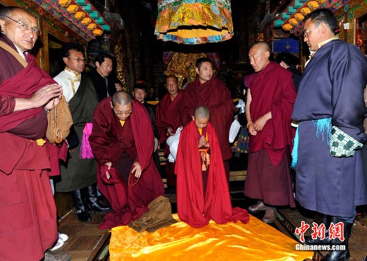 Ngày 11/3/2010 vừa qua, sau khi Phật sống Dezhub Jambai Gaisanggyaco đời thứ 5 Phật giáo Tây Tạng viên tịch, chính phủ Nhân dân khu Tự trị Tây Tạng dựa theo "biện pháp quản lý Phật sống chuyển thế của Phật giáo Tạng truyền", thực hiện "về vấn đề cho phép đi thăm dò, tìm kiếm, nhận định, xem cậu bé nào sẽ do Phật sống Dezhub Jambai Gaisanggyaco đời thứ năm chuyển thế", nhóm này họp thành tiểu tổ đi tìm linh đồng chuyển thế.
