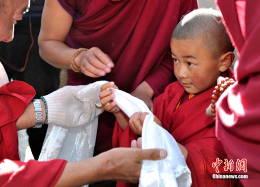 Ban Thiền Đạt Ma thứ 11 Bainqen Erdini Qoigyijabu – Phó chủ tịch Hiệp hội Phật giáo Trung Quốc, kiêm Ủy viên Hiệp thương Chính trị toàn quốc đã cử hành lễ thế phát xuất gia cho Phật sống đời thứ 6 và ban cho Losang Doje pháp danh là Dezhub Jamyang Sherab Palden.