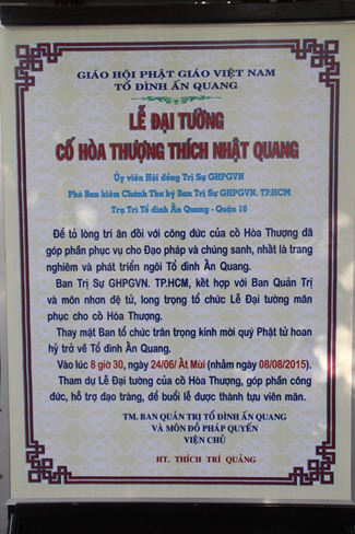 Được sự chỉ đạo của HT.Thích Trí Quảng, Phó Chủ tịch HĐTS – Trưởng BTS GHPGVN TP.HCM – Viện Chủ Tổ Đình Ấn Quang về việc lên chương trình chuẩn bị cho lễ Đại tường.