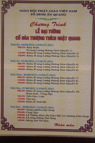 Được biết, lễ Đại tường của cố HT.Thích Nhật Quang năm nay sẽ diễn ra lễ cầu nguyện trong 05 ngày.