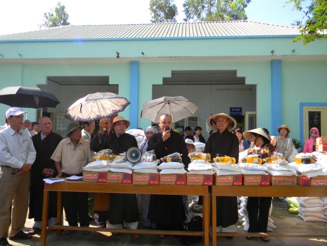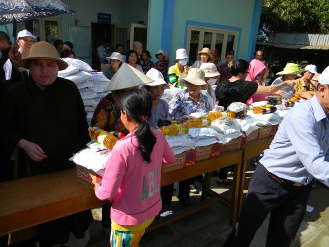 Được biết, tại 2 huyện bị thiện hại nặng nề do lũ gây vừa qua. Tại đây, đoàn đã phát 600 phần quà, mỗi phần quà trị giá 320 ngàn đồng, bao gồm; gạo, thùng mì, dầu ăn, cá khô và tiền mặt…