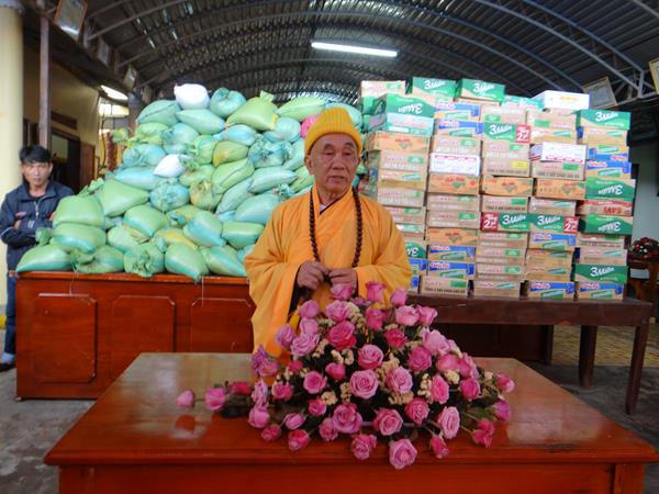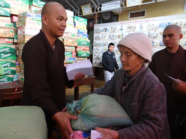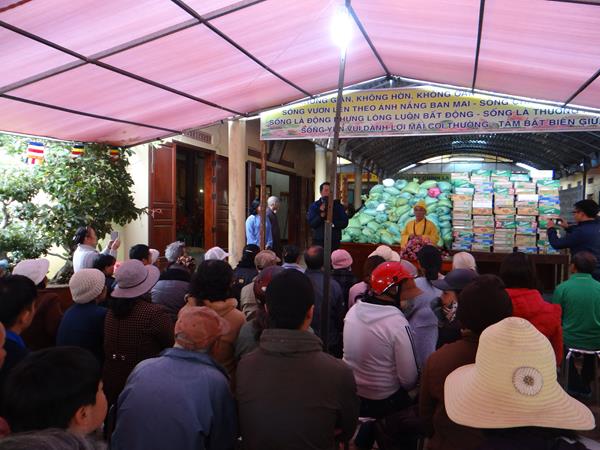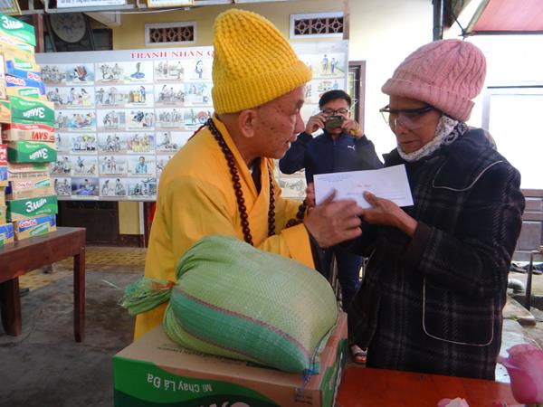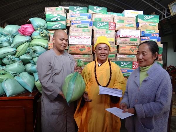 Cũng nhân dịp này, Tổ đình Linh Quang đã trao tặng 150 phần quà, mỗi phần trị giá 400.000 đồng cho bà con nghèo, có hoàn cảnh khó khăn
