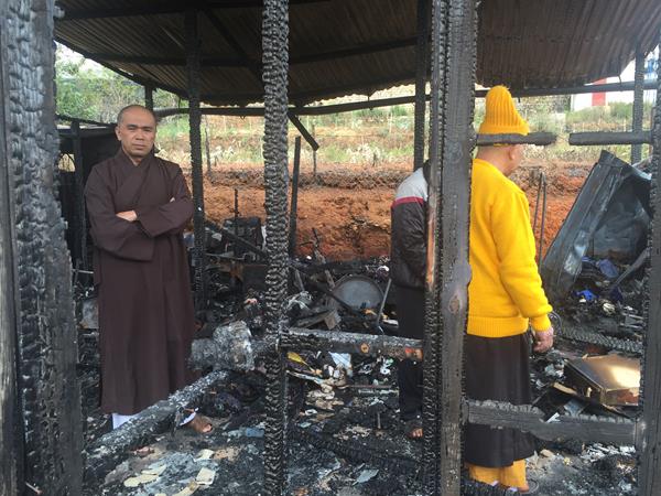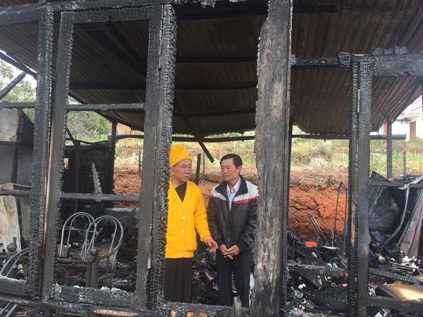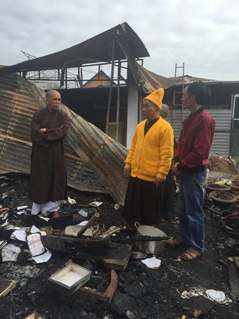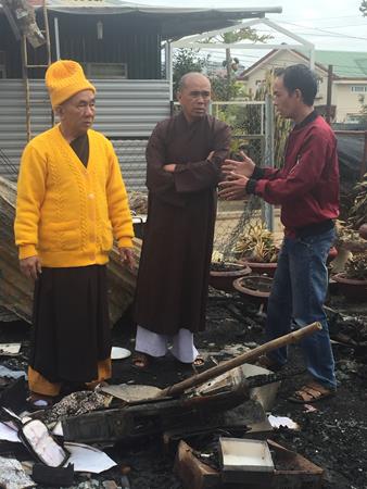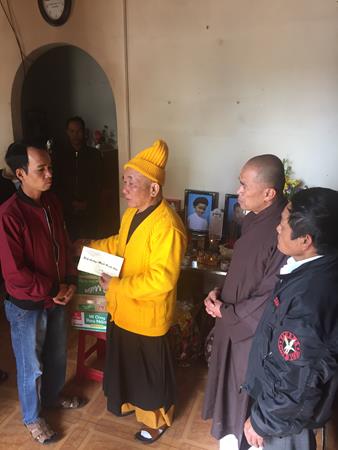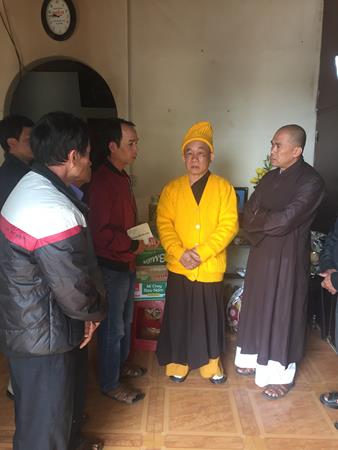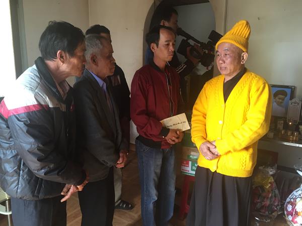 Nhằm động viên, an ủi và giúp đỡ gia đình anh Lê Ngọc Minh Quang, vừa bị hỏa hoạn thiêu rụi toàn bộ 2 căn nhà cùng 2 bé trai thiệt mạng vào chiều ngày 16/1 vừa qua . Sáng hôm nay, ngày 31/1/2017 ( nhằm ngày mùng 4 tết Đinh Dậu), HT. Thích Thanh Tân, viện chủ Tổ đình Linh Quang Tp Đà Lạt đã đến thăm hỏi, chia sẻ và sau khi thấp hương cầu nguyện cho hai cháu bé con anh Quang, hòa thượng đã trao tặng gia đình anh số tiền 10.000.000 đồng cùng nhiều nhu yếu phẩm sinh hoạt khác và mong rằng gia đình anh cố gắng sớm vượt qua nổi đau thương mất mát này để ổn định cuộc sống trong tình thương yêu của toàn xã hội .
