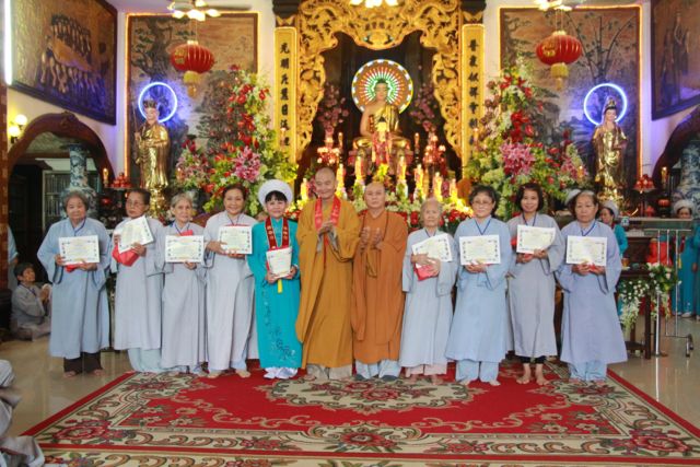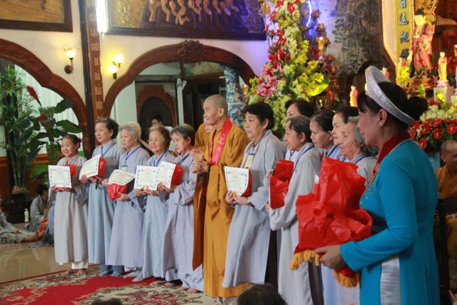 Để khích lệ tinh thần tu học cho quý Phật tử, Ban Tổ Chức đã trao Giấy Chứng Nhận và các tặng phẩm văn hóa Phật giáo trong niềm hoan hỷ của ngày lễ tổng kết.
