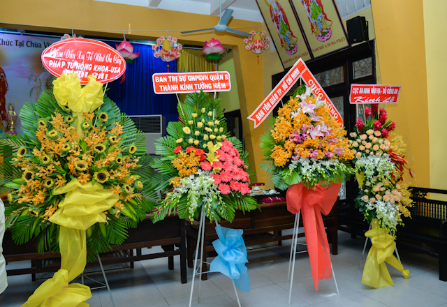 Nhiều lẵng hoa và quà dâng lên tưởng niệm cố Đại lão Hòa thượng