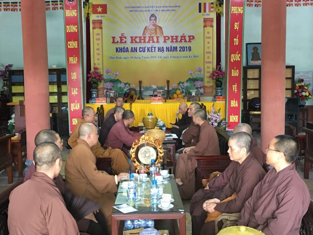Sáng nay, 29-07 (nhằm 27/6/Kỷ Hợi), tại chùa Thánh Long (P.Kỳ Bá, TP.Thái Bình), Thường trực BTS PG tỉnh Thái Bình tổ chức kỳ họp thường nguyệt nghe báo cáo tình hình tu học tại các trường hạ và thảo luận kế hoạch tổ chức các Phật sự từ nay tới hết mùa an cư.