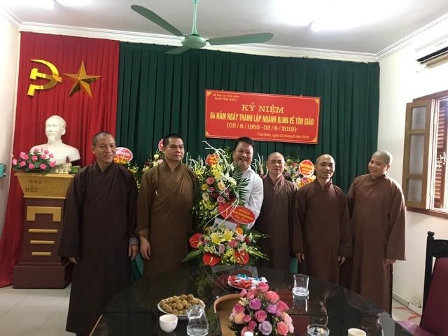 Sáng ngày 02 – 08 (02 – 7 năm Kỷ Hợi), TT.Thích Thanh Hòa, UV HĐTS, Trưởng BTS tỉnh cùng chư tôn đức Thường trực PG tỉnh, BTS PG các huyện thành phố đã đến thăm và chúc mừng cán bộ, nhân viên ban Tôn giáo (sở Nội vụ) tỉnh nhân dịp kỷ niệm 64 năm truyền thống ngành Quản lý nhà nước về tôn giáo (02-08-1955 – 02 – 08 – 2019. Ông Nguyễn Quang Minh, Trưởng ban Tôn giáo (sở Nội vụ) tỉnh Thái Bình đại diện tiếp đoàn.