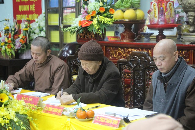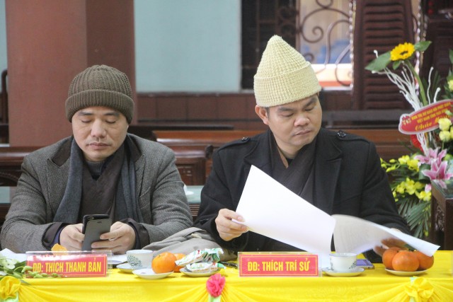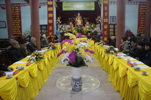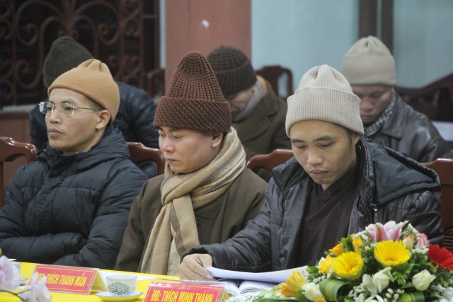 Tại hội nghị, chư tôn đức đã được nghe ĐĐ.Thích Thanh Ân tuyên đọc nghị quyết Hội nghị kỳ 4 TƯGH, quyết định tấn phong Giáo phẩm Thượng tọa cho 02 vị Đại Đức, Thông tư của ban HDPT TƯ về chương trình trong chuyến thăm và làm việc tại các tỉnh, thành phía Bắc; ĐĐ.Thích Thanh Vượng tuyên đọc quyết định bổ nhiệm chức vụ Chánh Thư ký BTS PG tỉnh và Q.Trưởng BTS PG huyện Đông Hưng; TT.Thích Thanh Hòa tuyên đọc Công văn của HĐTS về việc hướng dẫn tổ chức Đại hội PG cấp huyện, thành phố nhiệm kỳ 2016-2021; NS.Thích Đàm Thoa, Trưởng ban Kinh tế – Tài chính đọc báo cáo thu chi năm 2015. Dịp này, Chư tôn đức, quý vị đại biểu chúc mừng hai Thượng tọa được tấn phong.