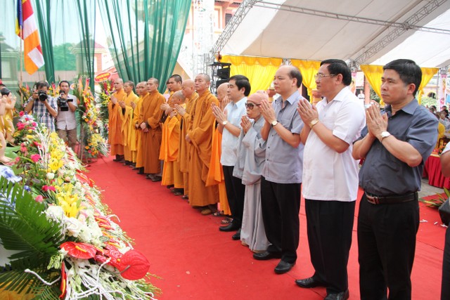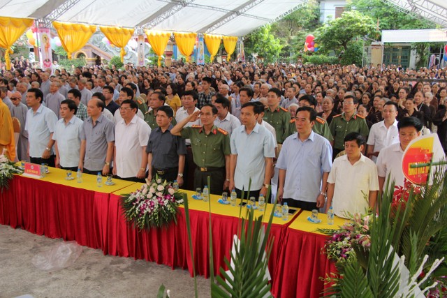 Đến chứng minh, tham dự Đại lễ có: HT.Thích Thanh Dục, UVTT HĐCM GHPGVN, chứng minh BTS PG tỉnh Thái Bình; TT.Thích Thanh Hòa, UV HĐTS GHPGVN, Trưởng BTS PG tỉnh; TT.Thích Thanh Định, UV HĐTS GHPGVN, Phó ban Thường trực BTS PG tỉnh; TT.Thích Thanh Tụ, Trưởng BTS PG huyện Thái Thụy; ĐĐ.Thích Thanh Vượng, Phó BTS PG tỉnh; cùng chư tôn đức Tăng, Ni BTS PG tỉnh, 8 huyện, thành phố trong tỉnh; chư tôn đức trụ trì các tự viện trên địa bàn tỉnh.