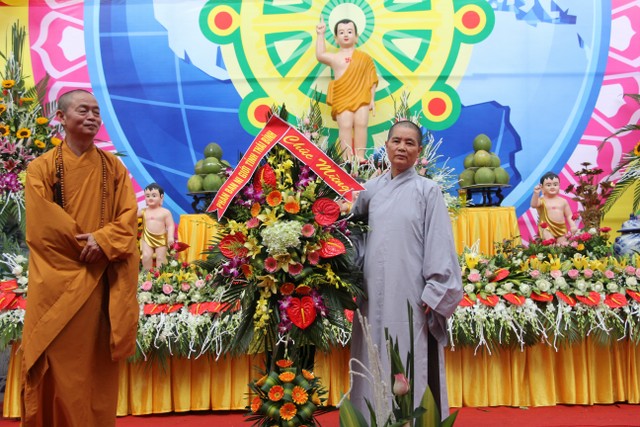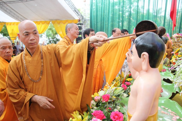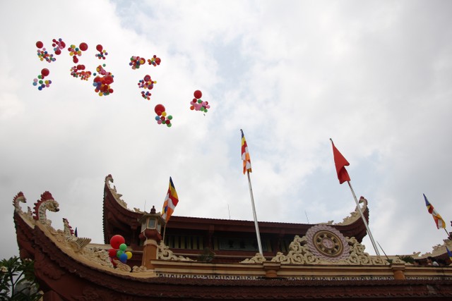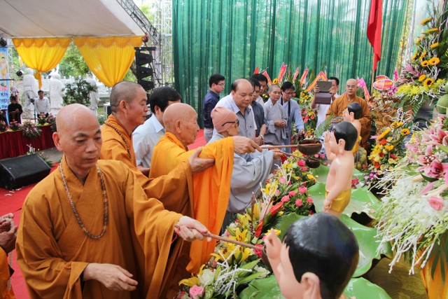 Kết thúc buổi lễ, chư tôn đức, quý vị đại biểu đã dâng hương và cử hành nghi thức tắm Phật trong tinh thần trang nghiêm, thành kính, hòa hợp trong ngày đản sinh của đức Bản sư Thích Ca, thả bóng bay và chim bồ câu hòa bình.