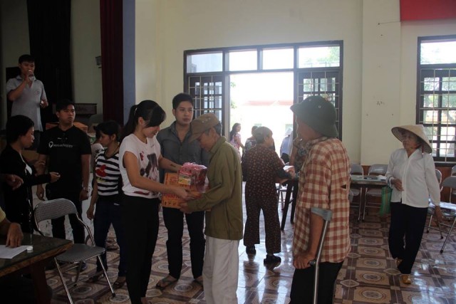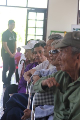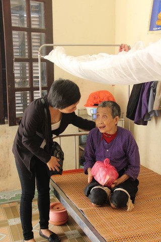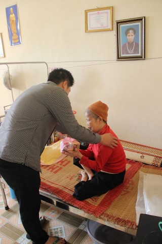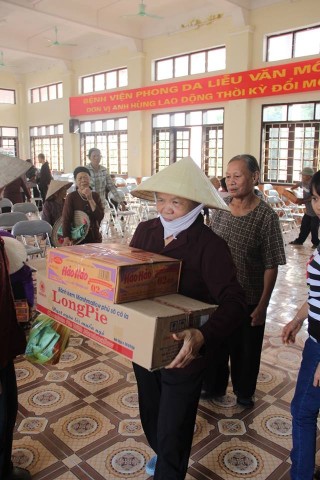 Sau phần phát biểu của anh Phạm Trường – đại diện nhóm Thiện nguyện và đại diện Ban Giám đốc bệnh viện, các bạn đã tận tay trao tới các cụ những phần quà ấm áp tình người. Đó là những thùng mì tôm, hộp bánh… tuy giản đơn nhưng đầy ý nghĩa với các cụ bệnh nhân – những người đang gặp khó khăn trong đời sống. Các bạn trẻ đã tận tay mang đến phòng ở cho các cụ không thể đến hội trường được.