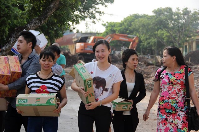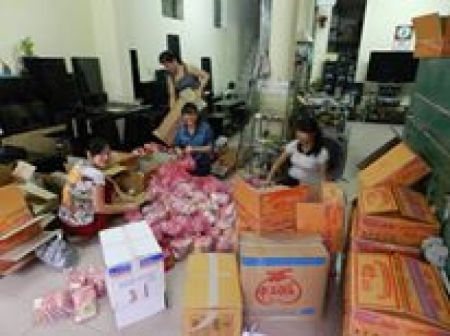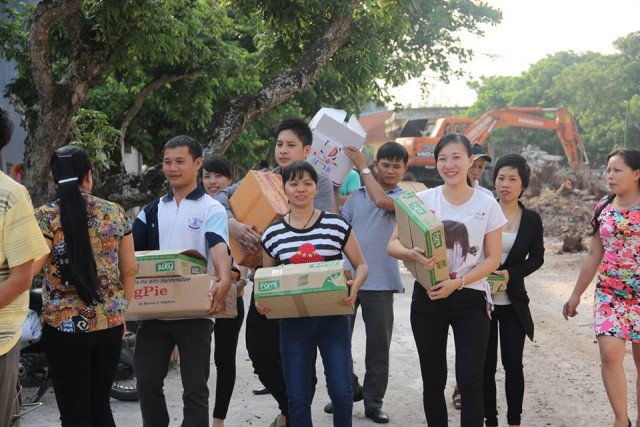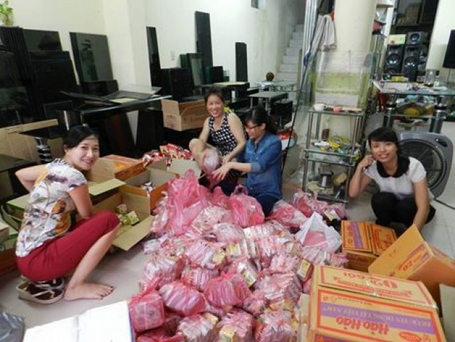 1) Ngày 04/10/2014:Cô Thoa Nguyễn ủng hộ 30 thùng mì tôm Hảo Hảo