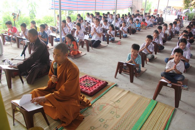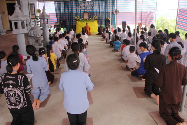 Trong thời khóa buổi sáng, các bạn đã được nghe thời pháp thoại của TT.Thích Thanh Định với chủ đề “Con đã biết lỗi rồi”. Qua những lời phân tích cùng những câu chuyện về các bạn nhỏ từng đến chùa, Thượng tọa đã cho đại chúng thấy được những lỗi lầm thường thấy của các bạn nhỏ do nghiện game, internet, đua đòi theo các thói hư tật xấu. Từ đây, Thượng tọa khuyến tấn đại chúng cần phải chỉnh sửa hành vi, tránh xa bạn xấu và cám dỗ của thời đại, trau dồi Phật pháp, hiếu thảo với ông bà, cha mẹ để trở thành người có ích.