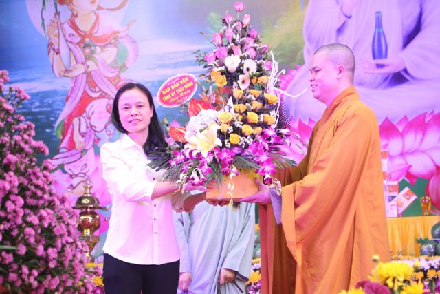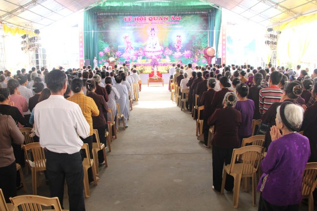 Tiếp đó, TT.Thích Thanh Định, UV HĐTS, Phó ban Thường trực BTS PG tỉnh thay mặt cho chư tôn đức tuyên đọc diễn văn về ý nghĩa của lễ hội Quan Âm, nhắc nhở quý Phật tử hãy thực tập hạnh lắng nghe của Bồ tát, tích cực làm những việc công ích gây niềm lợi lạc để cho hoa trái tình thương được hiển hiện khắp mọi nơi mọi chốn.
