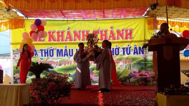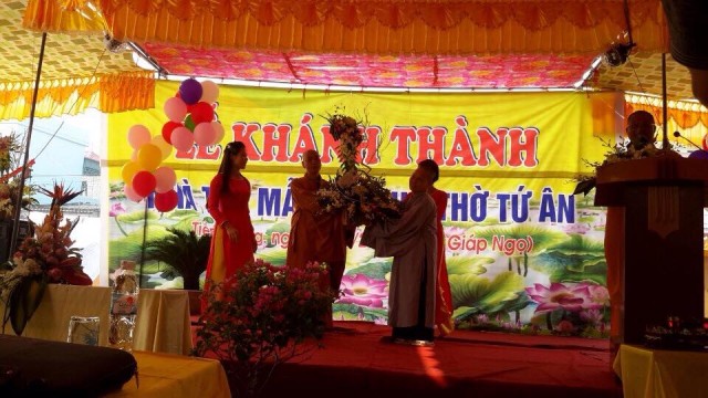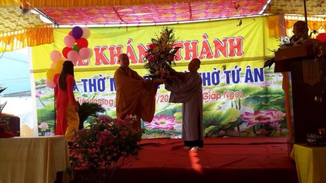 Tại buổi lễ, chư tôn đức, quý quan khách cùng đại diện Phật tử đã có những lẵng hoa tươi thắm chúc mừng SC trụ trì Thích Đàm Mậu nhân ngày lễ khánh thành. Ban đạo từ tại buổi lễ, TT.Thích Thanh Định đã có lời tán thán công đức SC trụ trì cùng nhân dân Phật tử đã xây dựng ngôi Tam Bảo khang trang, bề thế, làm nơi tu học cho tín đồ. TT cũng mong muốn SC trụ trì cùng nhà chùa sẽ có những việc làm tích cực hơn nữa nhằm đưa hoạt động, tín ngưỡng của nhân dân vào nề nếp, nhằm bài trừ mê tín, dị đoan, xây dựng một đạo Phật trang nghiêm.