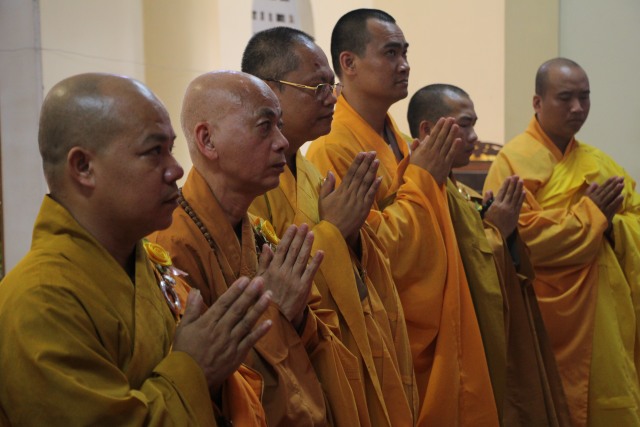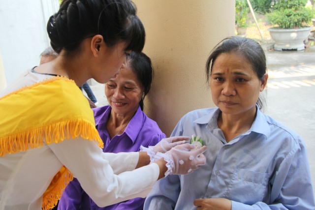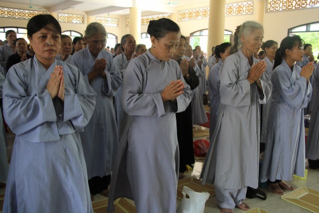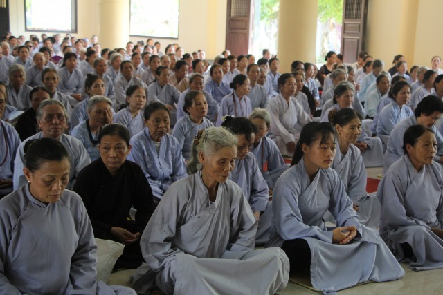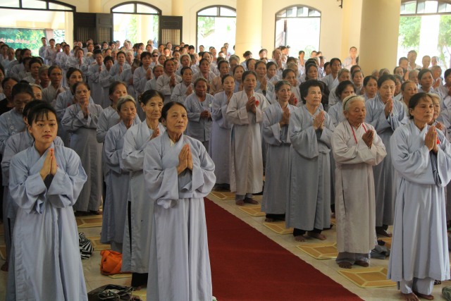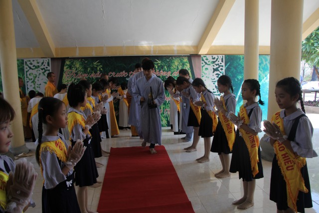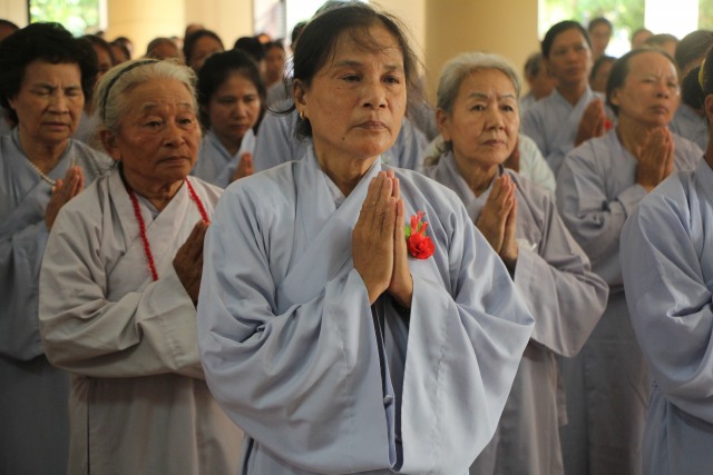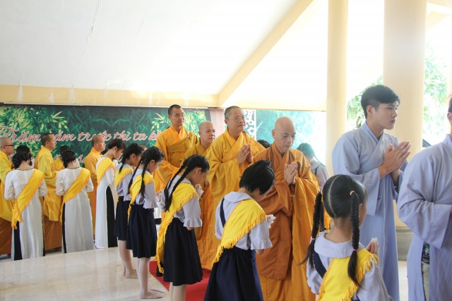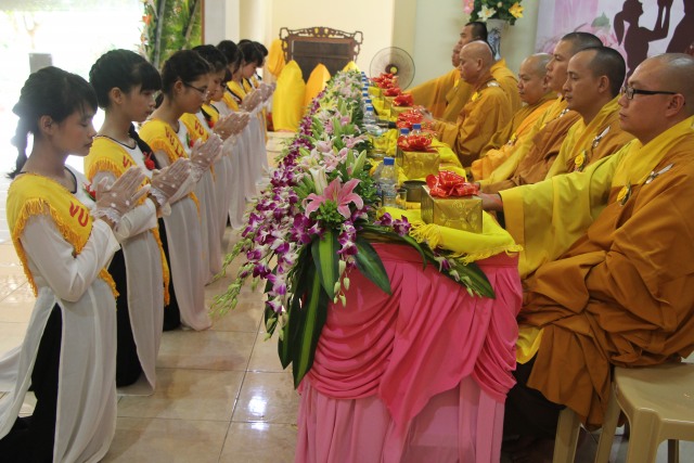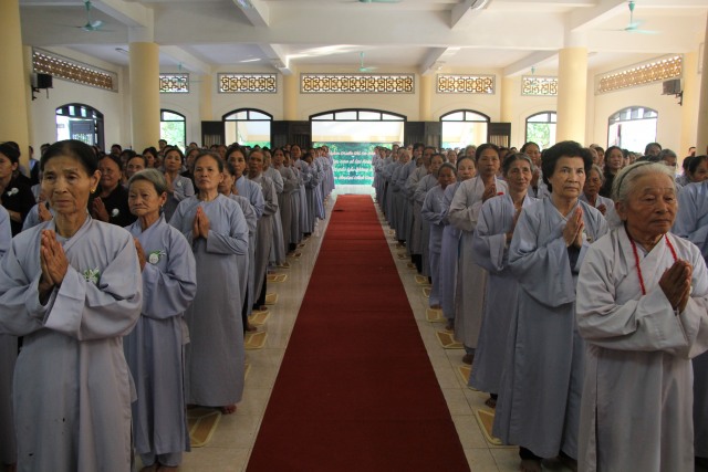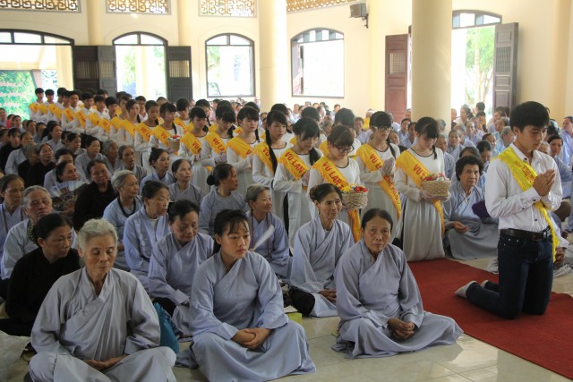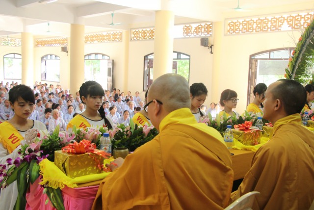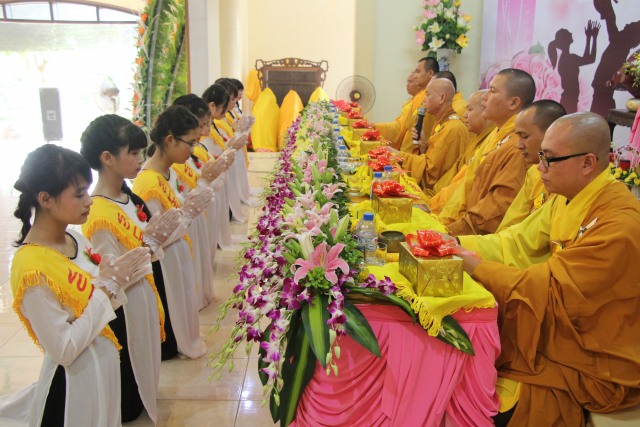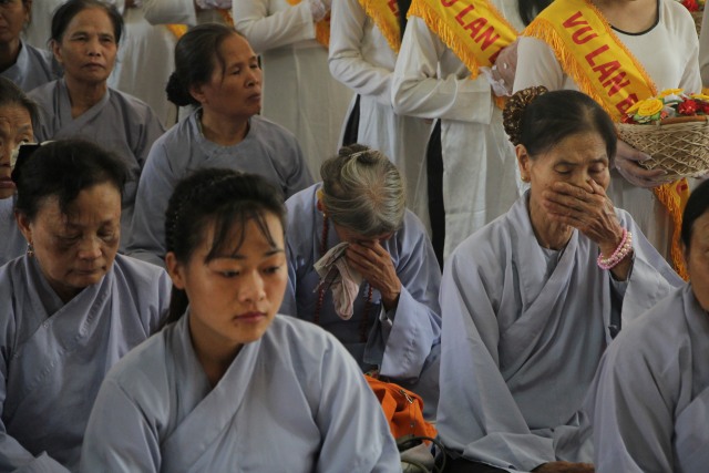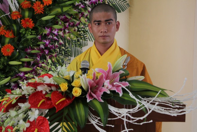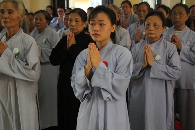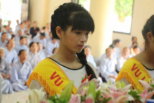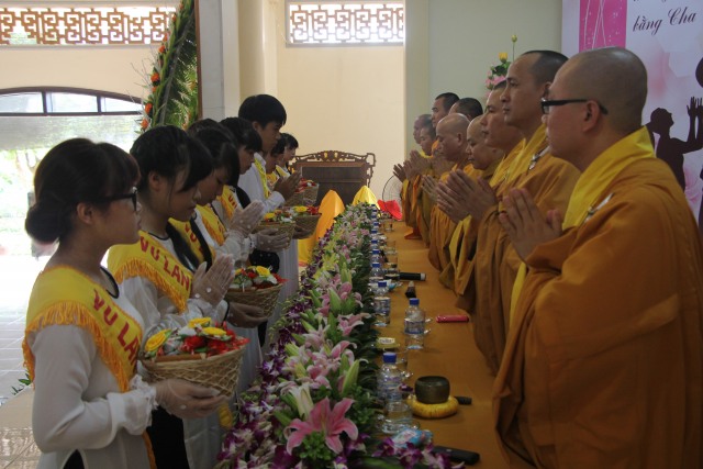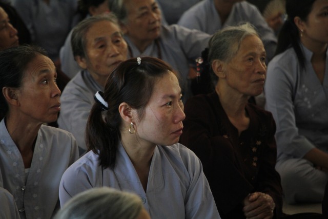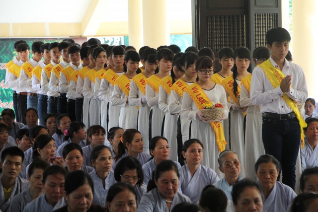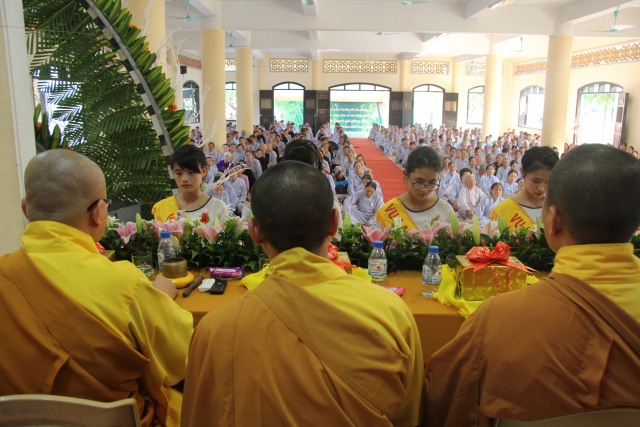 Toàn thể đại chúng vô cùng xúc động khi nghe ĐĐ trụ trì Thích Tâm Kính diễn đọc ý nghĩa cài hoa hồng và hoài niệm về ngày từ biệt cha mẹ đi xuất gia.