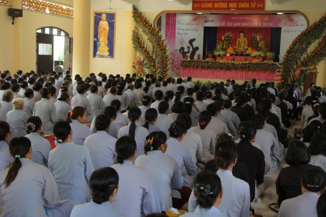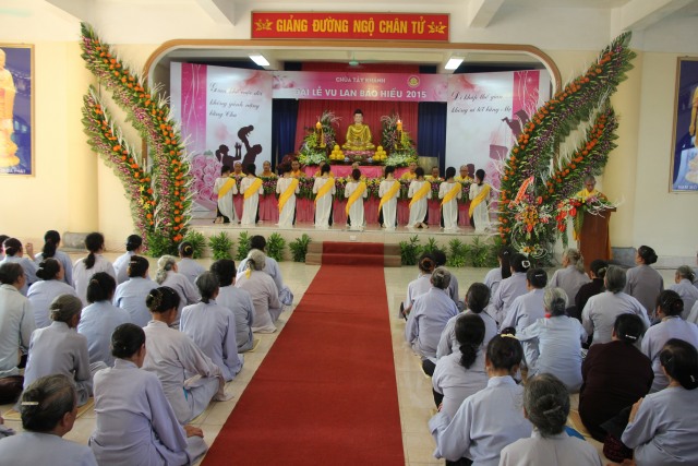 Sau khi nạp thọ pháp y do các em thanh niên Phật tử chùa Tây Khánh dâng cúng, TT.Thích Thanh Định đã có đôi lời đạo từ với toàn thể đạo tràng trong ngày lễ Vu Lan. Thượng tọa nhấn mạnh: “Là người con Phật, chúng ta cần biết báo ơn và đền ơn. Mỗi ngày chúng ta cần biết làm tròn chữ hiếu chứ không chỉ riêng trong mùa Vu Lan.