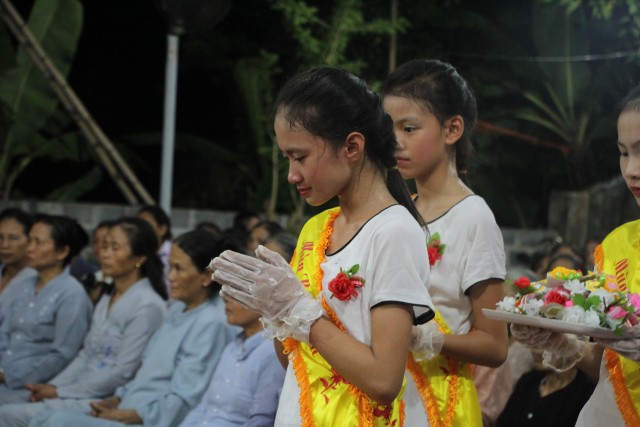 Buổi lễ diễn ra với các nghi thức truyền thống trong không khí trang nghiêm, thành kính dâng lên Tam Bảo và hai đấng sinh thành.