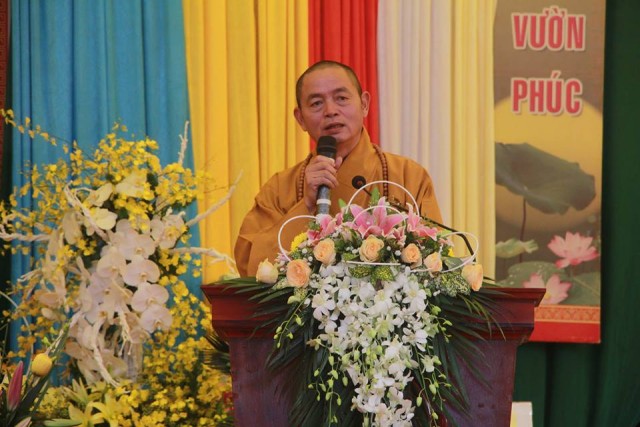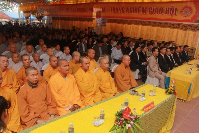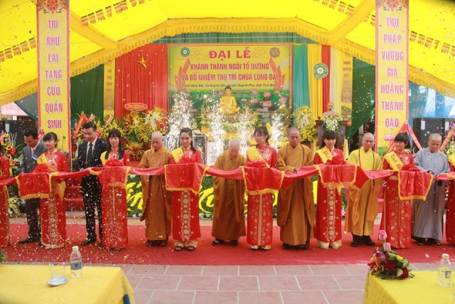 TT.Thích Thanh Hòa có lời tán thán công đức SC trụ trì cùng nhân dân Phật tử đã xây dựng ngôi Tổ đường khang trang, bề thế, làm nơi tu học cho tín đồ. Thượng tọa cũng mong muốn SC hãy làm tròn bổn phận của người tu sĩ theo lời dạy của chư Phật, chư Tổ, tuân thủ giới luật và Hiến chương của Giáo hội theo phương châm “Đạo pháp – Dân tộc – Chủ nghĩa xã hội”, sống tốt đạo, đẹp đời. Cuối cùng, chư tôn đức cùng quý quan khách đã làm lễ cắt băng khánh thành.