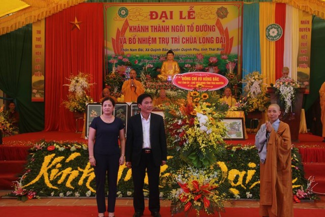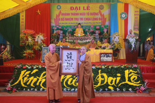 Tại buổi lễ, thay mặt cho BTS GHPGVN tỉnh, TT.Thích Thanh Hòa trao quyết định bổ nhiệm trụ trì cho Sư Cô. Chư tôn đức, quý quan khách cùng đại diện Phật tử đã có những lẵng hoa tươi thắm, phần quà chúc mừng SC trụ trì. Đối trước chư tôn đức, Sư Cô đã có lời phát nguyện, hứa sẽ hoàn thành tốt sứ mạng “trụ pháp vương gia – trì Như Lai tạng”, hướng dẫn nhân dân tu học đúng chính pháp, sống tốt đời đẹp đạo, góp phần xây dựng nông thôn mới tại địa phương.