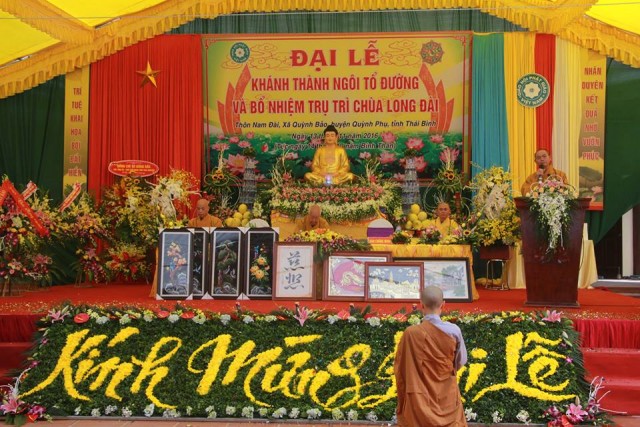 Theo đó, chùa Long Đài (chùa Rồng, thôn Nam Đài) được xây dựng từ năm 1847. Trải qua mưa nắng của thời gian, các công trình thờ tự của chùa đã xuống cấp trầm trọng. Nhận lời thỉnh cầu của nhân dân tín đồ Phật tử, SC.Thích Diệu Mai đã về đây trụ trì chùa từ năm 2013, đến đầu năm 2015 thì khởi công xây dựng ngôi nhà Tổ với kiến trúc 5 gian, lợp mái ngói đỏ với tổng kinh phí gần 3 tỷ đồng. Sau gần 2 năm thi công, đến nay công trình đã hoàn thành. Ngày 01/08/2016, BTS PG tỉnh đã có quyết định chính thức bổ nhiệm trụ trì.