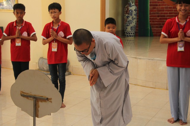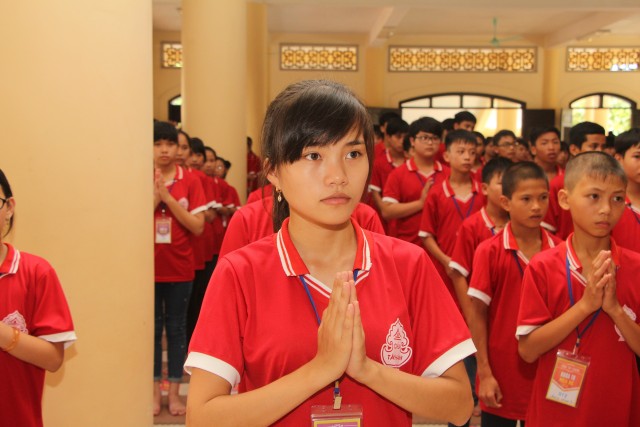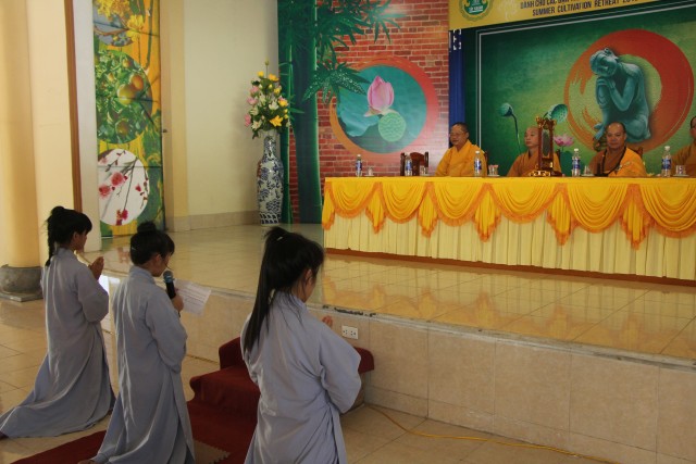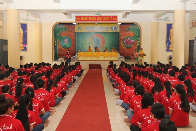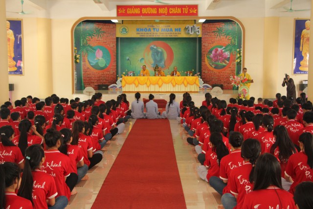 Ngay từ sáng ngày 26/06/2015 (nhằm ngày 11/05/Ất Mùi), các bạn trẻ từ 11-25 đã về chùa dự khóa tu. Ban tổ chức đã phát thẻ, phiếu gửi đồ, đồng phục khóa tu và sắp xếp nơi ăn ở trong bốn ngày ở chùa. Tiếp đó, các quý thầy chùa Hoằng Pháp đã chia chúng để các bạn tiện sinh hoạt: chúng THAM ĂN, chúng THAM NGỦ, chúng LƯỜI BIẾNG, chúng NÓI DỐI. Các bạn đã được giao lưu và học các bài hát sinh hoạt khóa tu. Cũng trong thời khóa buổi sáng, Đại đức trụ trì đã quang lâm giảng đường và phổ biến nội quy khóa tu.