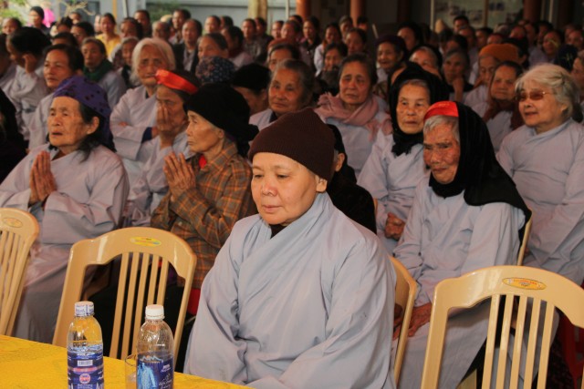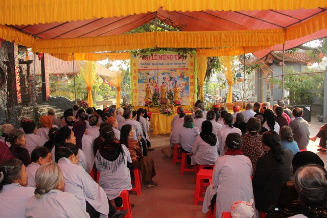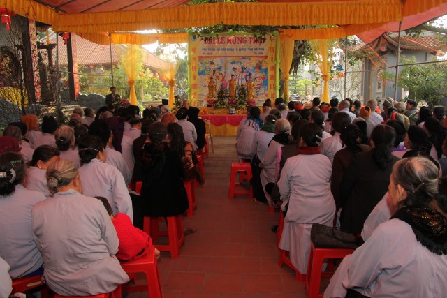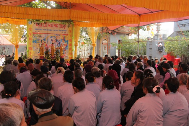 Thấm nhuần tinh thần nhân văn cao đẹp đó, đồng thời thể hiện tinh thần hoằng pháp lợi sinh của người con Phật, tri ân quốc gia xã hội, ân thí chủ, đàn na, hôm nay ngày 28/02/2016 (nhằm ngày 21/Giêng/Bính Thân), trong tiết trời xuân nắng vàng rực rỡ, hòa quyện với mùi hương trầm giải thoát, dưới ánh hào quang của mười phương chư Phật và sự chứng minh, hiện diện rất mực trang nghiêm của chư tôn đức, quý vị đại biểu cùng đông đảo nhân dân Phật tử, tại chùa Từ Vân (thôn Bình Minh, xã Việt Thuận, huyện Vũ Thư, tỉnh Thái Bình) long trọng tổ chức lễ mừng thọ, chúc thọ cho các cụ cao niên và Phật tử chùa Từ Vân.