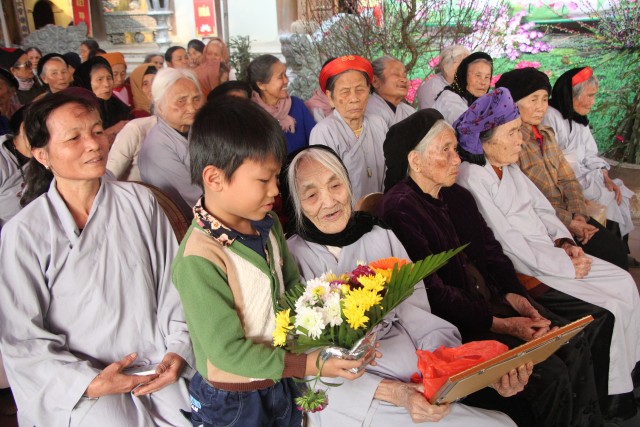 Năm nay, toàn xã có 134 cụ, trong đó có 30 cụ trên 90 tuổi vinh dự được nhà chùa tổ chức mừng thọ, chúc thọ đầu xuân. Đây là lần đầu tiên nhà chùa tổ chức buổi lễ ý nghĩa này.