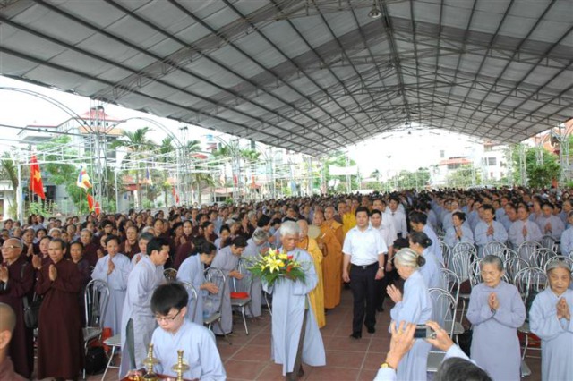Trong buổi lễ Đồng chí Vũ Đức Hạnh, chủ tịch UBMTTQ tỉnh Thái Bình đã có bài diễn văn khai mạc vô cùng xúc động trước toàn thể đại chúng, Đ/c đã nhắc lại những tháng ngày đau thương những mất mát to lớn về người về của  trong các cuộc chiến tranh của nhân dân Thái Bình, sau đó đại diện chư tôn đức và các cấp lãnh đạo đã dâng hương tưởng niệm, thả bồ câu, và tụng kinh cầu siêu và tưởng niệm những đồng bào đã tử nạn do chiến tranh và nạn đói năm 1945. Đại lễ thành công viên mãn trong niềm hoan hỉ của dại chúng trong pháp hội.