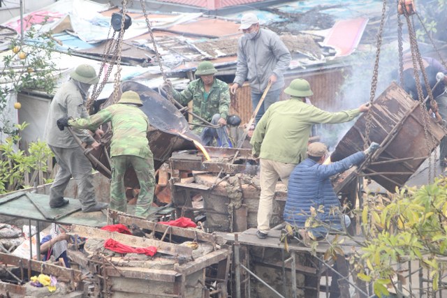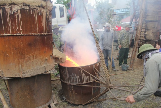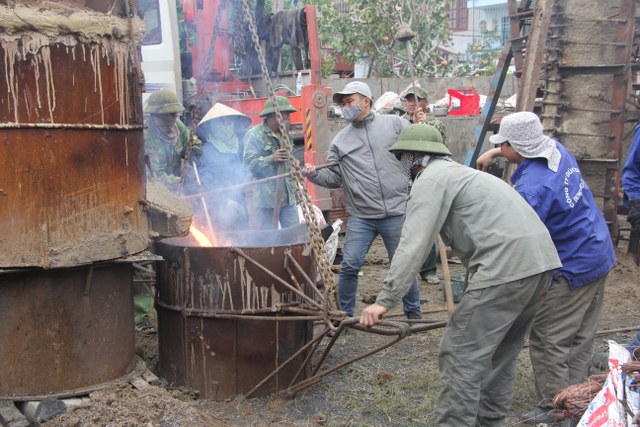 Đúng 09g30 chư tôn đức cử hành nghi thức niêm hương, sái tịnh cầu nguyện lễ rót đồng đúc tượng được thành tựu viên mãn.