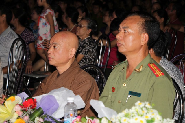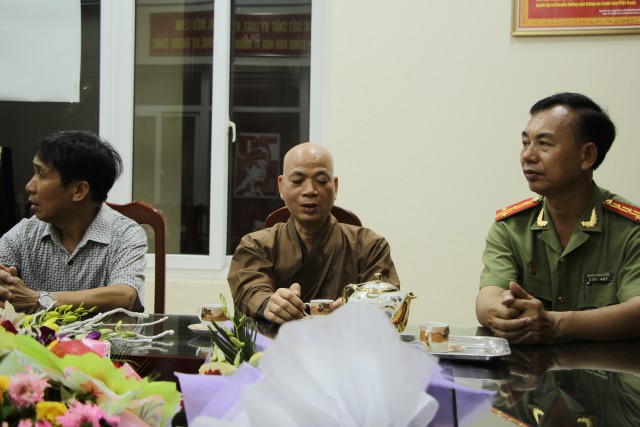Trong tối 18/08, Thượng tọa cùng chư Tăng đã dự chương trình giao lưu nghệ thuật “VÌ BÌNH YÊN CUỘC SỐNG” do Công an tỉnh tổ chức. Trước đó, Thượng tọa đã tới thăm và chúc mừng lãnh đạo phòng PA88 Công an tỉnh. Tiếp đoàn có ông Nghiêm Lương Duyên, Đại tá, Trưởng phòng PA88 Công an tỉnh.