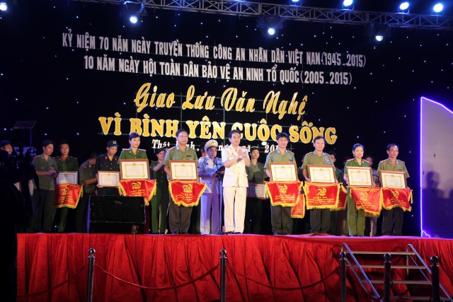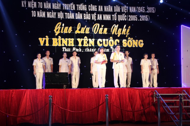 Chương trình giao lưu nghệ thuật chào mừng kỷ niệm 70 năm ngày truyền thống An ninh nhân dân có: bà Cao Thị Hải, Tỉnh ủy viên, Phó Chủ tịch UBND tỉnh cùng lãnh đạo các sở ngành của tỉnh; Thiếu tướng Lê Đình Nhường, Giám đốc Công an tỉnh cùng đại diện các phòng, ban Công an tỉnh.