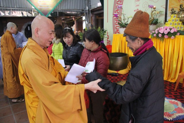 Tổng giá trị quà trên 50 triệu đồng. Số tiền được tiết kiệm từ “hòm từ thiện không đốt vàng mã” được nhà chùa tổ chức và duy trì từ nhiều năm nay. Ngoài ra, chùa còn chuyển quà của hội từ thiện Hương Từ Tâm (TP.Hải Phòng) tặng ông Đỗ Văn Luyện (quê Đồng Tiến, Quỳnh Phụ) bị bệnh khối u ở mặt.