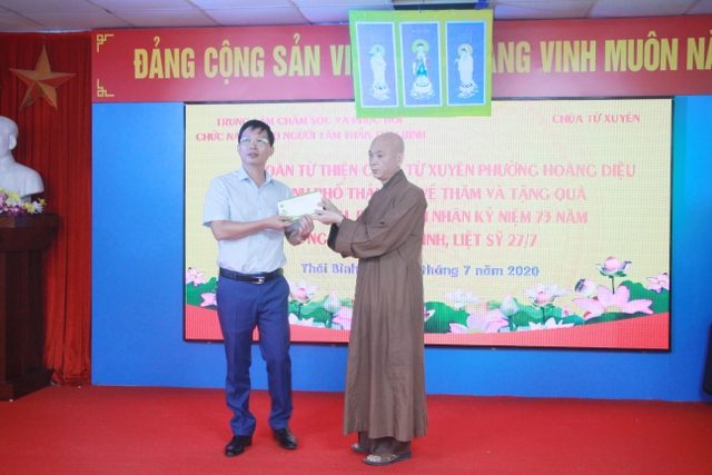 Cùng với các đơn vị trong tỉnh tổ chức nhiều hoạt động tri ân người có công nhân kỷ niệm 73 năm ngày Thương binh – Liệt sĩ (27-7-1947 – 27-7-2020), sáng qua 22-7, Thượng toạ trụ trì Thích Thanh Định cùng chư Tăng, Phật tử chùa Từ Xuyên (P.Hoàng Diệu, Tp.Thái Bình), Hội Từ thiện Tp.Thái Bình đã tới thăm, tặng quà cho các đối tượng đang điều trị, sinh hoạt tại Trung tâm Chăm sóc và Phục hồi chức năng cho người tâm thần có công tỉnh (xã Đông Kinh, huyện Đông Hưng) với mong muốn mang nhiều niềm vui đến với họ.