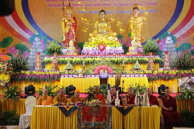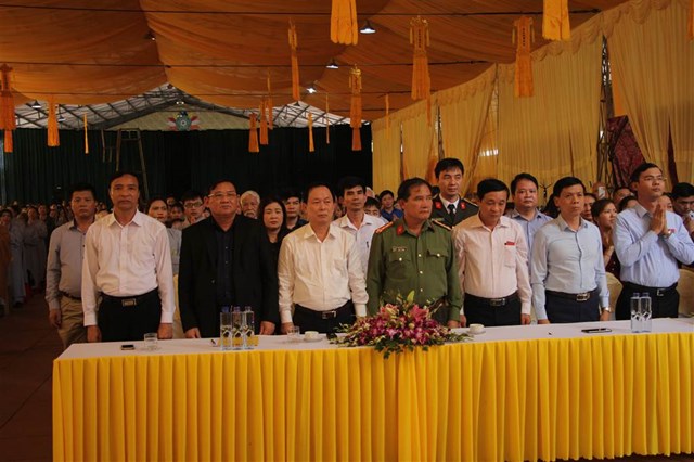 Tới chứng minh tham dự về phía Giáo hội có sự quang lâm của HT Thích Thanh Dục – Ủy viên HĐCM TƯ GHPG Việt Nam, Rinpoche Sonam – Phó viện trưởng trường đại học Phật giáo Tango vương quốc Bhutan, TT Thích Thanh Hòa – Trưởng BTS GHPGVN tỉnh Thái Bình, TT Thích Thanh Định – Phó ban thường trực BTS GHPGVN tỉnh Thái Bình, cùng phái đoàn Phật giáo Bhutan, chư tôn đức tăng ni trong toàn tỉnh. Về phía lãnh đạo chính quyền có ông Đỗ Đình An – Bí thư Thành ủy, Chủ tịch UBND TP Thái Bình, ông Phạm Văn Xuyên – Phó chủ tịch UBDN tỉnh Thái Bình, , cùng các ông bà đại diện cho các cơ quan ban nghành trong tỉnh cùng về tham dự. Về phía nhà tài trợ có bà Nguyễn Thị Thùy Dương – Gian đốc Cty Bất động sản Dương Đường. cùng các thiện nam tín nữ Phật tử trong và ngoài tỉnh cùng về tham dự.