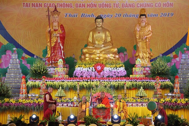 Chương trình cụ thể của đại lễ: vào buổi sáng Chư tôn đức trong ban trị sự đã thực hiện những nghi lễ cúng Phật và cầu siêu hương linh, bên cạnh đó cúng cũng có những nghi thức gia trì của Phái đoàn Phật giáo bhutan. Buổi chiều cùng ngày chương trình đại lễ cầu siêu chính thức cử hành trọng thể, trong chương trình cũng có kết hợp trao quà từ thiện của nhà tài trợ. Ngay sau buổi lễ chư tôn đức cùng các nhà hảo tâm và nhân dân Phật tử đồng tiến ra sông Trà Lý làm lễ phóng sinh và thả hoa đăng. Tối cùng ngày là chương trình văn nghệ đặc sắc với sự góp mặt của các nghệ sĩ nổi tiếng. Đại lễ đã tổ chức thành công viên mãn.