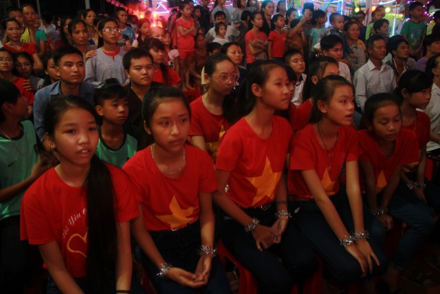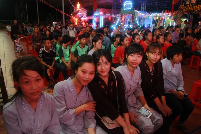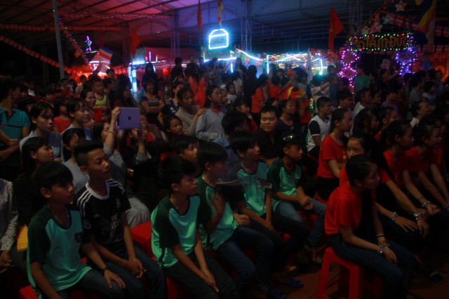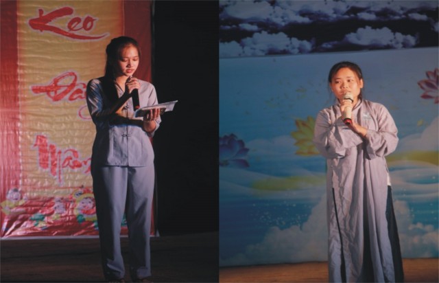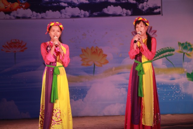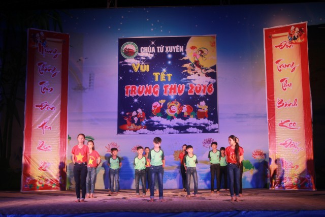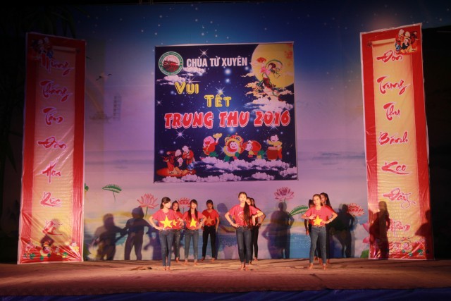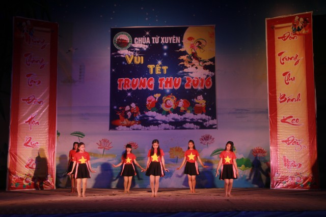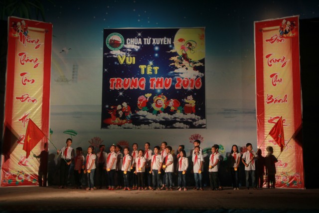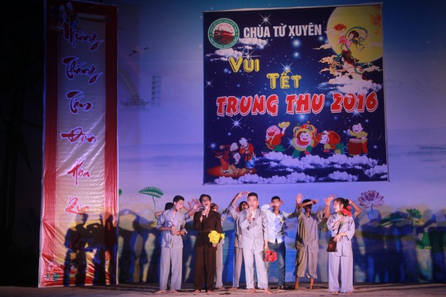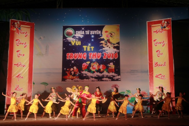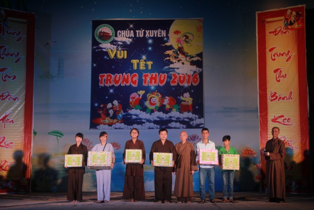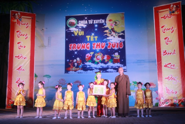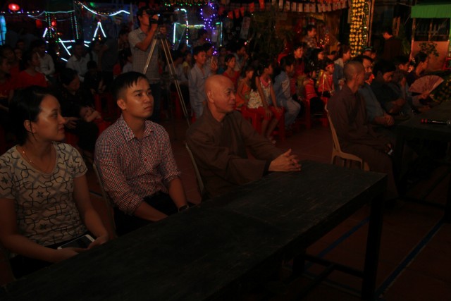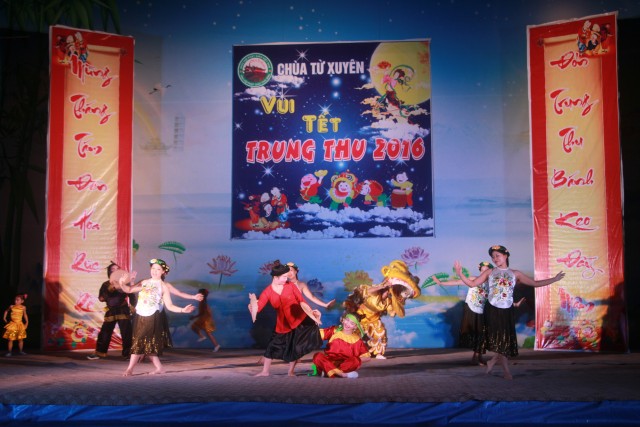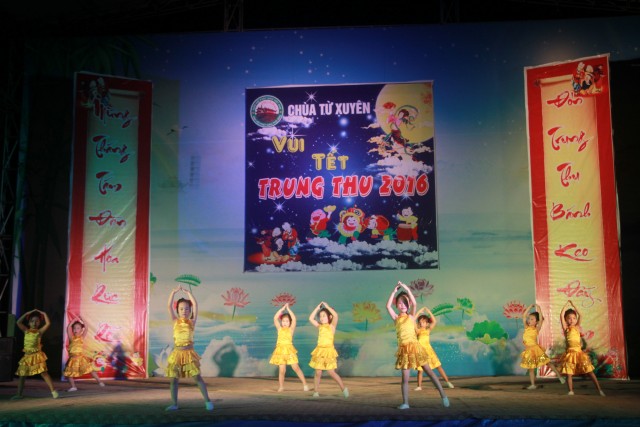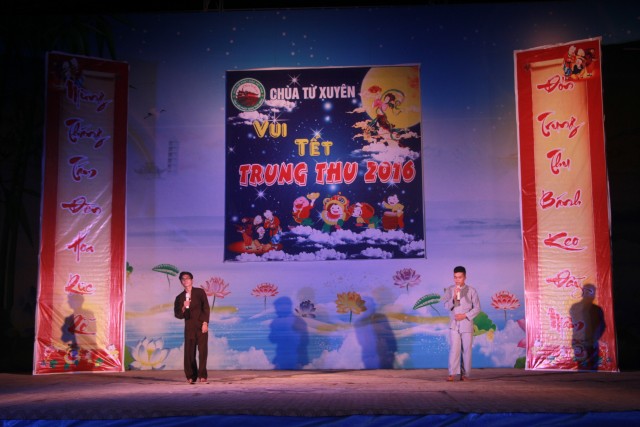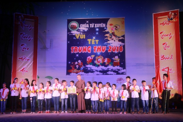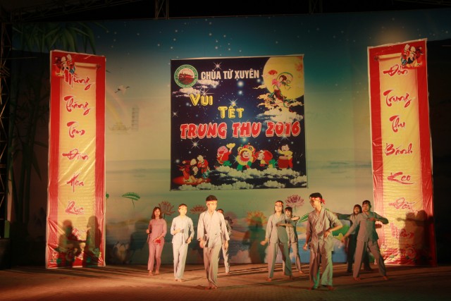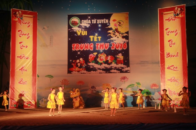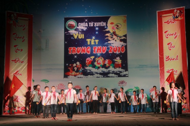 Trong đêm trung thu, các bạn thanh thiếu niên và các em nhỏ đã dâng lời ca tiếng hát, điệu múa của mình cúng dường Tam Bảo, tạo ra đêm nhạc nhiều màu sắc. Sau đó, chư Tôn đức đã làm lễ phá cỗ và phát quà cho các em nhỏ. Hơn 15 tiết mục dàn dựng công phu của các bạn nhỏ lần lượt được trình diễn, dưới sự cổ vũ cũng như động viên vô cùng to lớn từ quý khán giả, đã đem lại một “Đêm hội trăng rằm” vô cùng hấp dẫn, thắm đượm tình thương mà quý thầy cũng như phụ huynh dành cho thế hệ trẻ – chủ nhân tương lai của đất nước. Cuối chương trình, quý Thầy đã trao thưởng chương trình thi cắm trại, thi nấu ăn và phát quà cho các cháu về chùa dự đêm liên hoan.